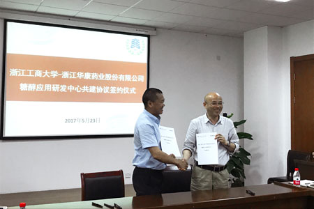 5月23日下午,浙江工商大學與浙江華康藥業(yè)股份有限公司在工商大學食品與生物工程學院會議室,共同簽訂了“浙江工商大學&華康藥業(yè)糖醇應用研發(fā)中心共建協(xié)議”。